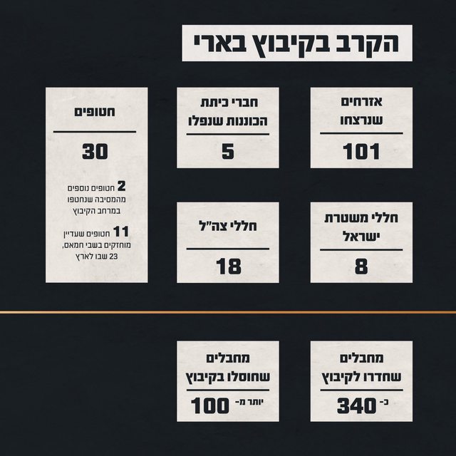 調查結果顯示,約 340 名恐怖分子滲透到Kibbutz領土上,包括約 100 名恐怖組織Hamas
