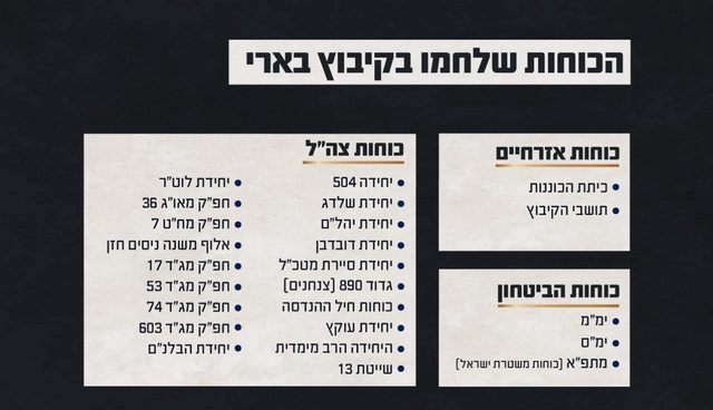 在Kibbutz之外建立防線的部隊。 10/7 ,許多戰鬥中心的特點是缺乏秩序,目前正在作為