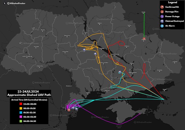 【俄羅斯 Shahed 無人機攻擊路線】