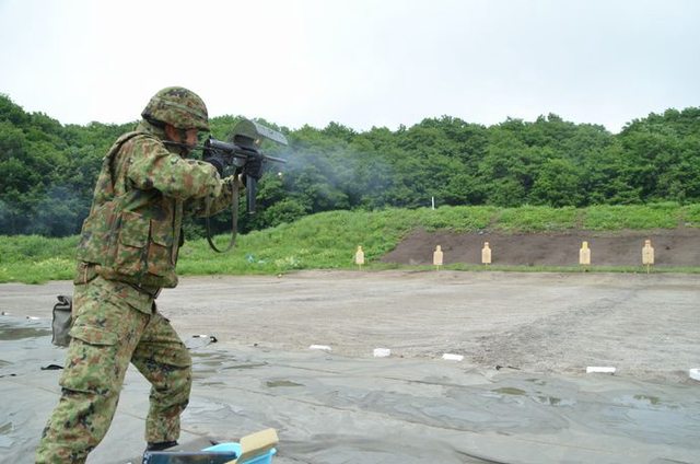 使用M3衝鋒槍進行訓練射擊的日本自衛隊員