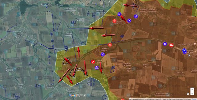 俄軍在T0504方向推進,同時也擴大普雷羅斯