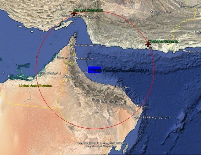 這使得尼米茲級航空母艦距離阿巴斯港和恰巴哈爾/科納拉克空軍基地等距約 200 英里,並
