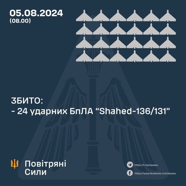 據稱共有 24架「沙赫德」型無人機被摧毀