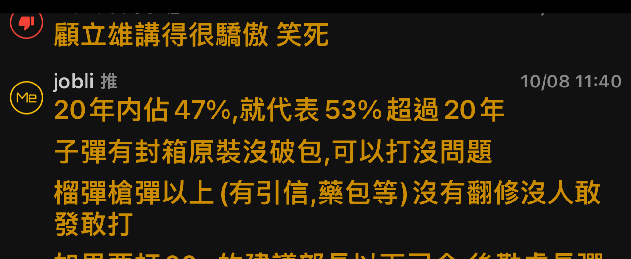 → jobli : 先設你的消息來源為真,全部是子彈 10/08 22:32