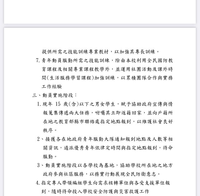 推 lolen : 戰時動員高中職以上的學生加入民防隊伍還算合理,但 10/18 17:31