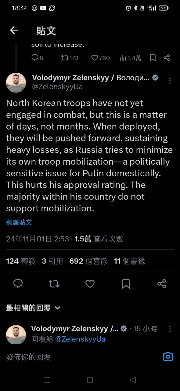 → andyken : 澤倫斯基是說還沒在戰場出現,不是沒派兵,你是不是 11/01 20:16