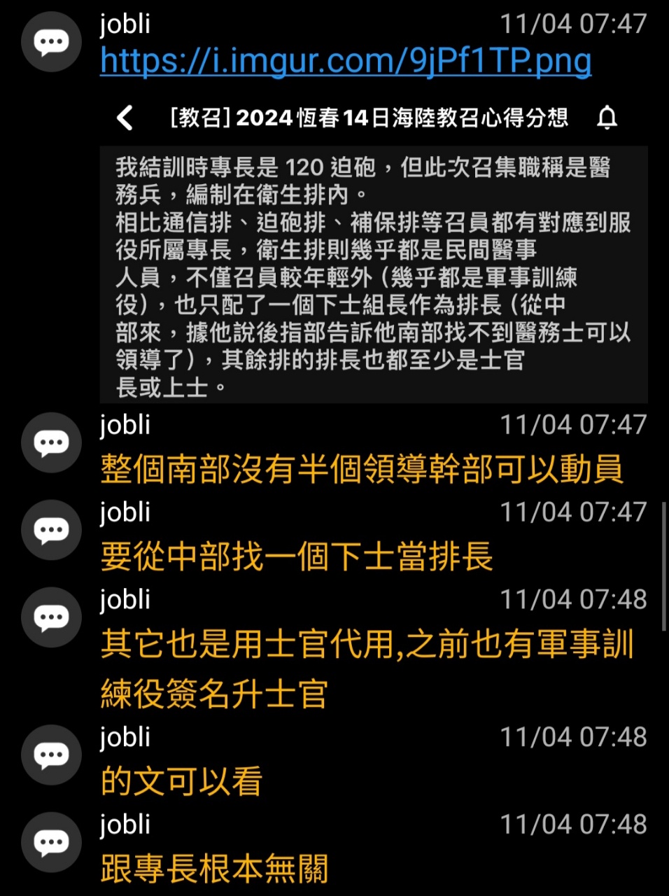 → jobli : 其它也是用士官代用,之前也有軍事訓練役簽名升士官 11/04 07:48