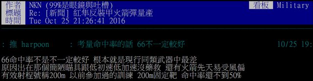 → ja23072008 : 潛在原因就會懷疑中科院並沒有建立200m以上射程的 11/15 22:23