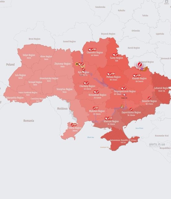 烏克蘭空軍向全國發出空襲警報,注意到俄羅斯