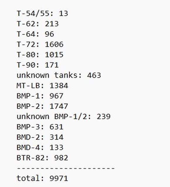 裝甲戰車損失: 10978