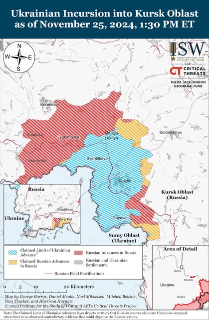 ISW先前於11月24日評估稱,俄羅斯軍事