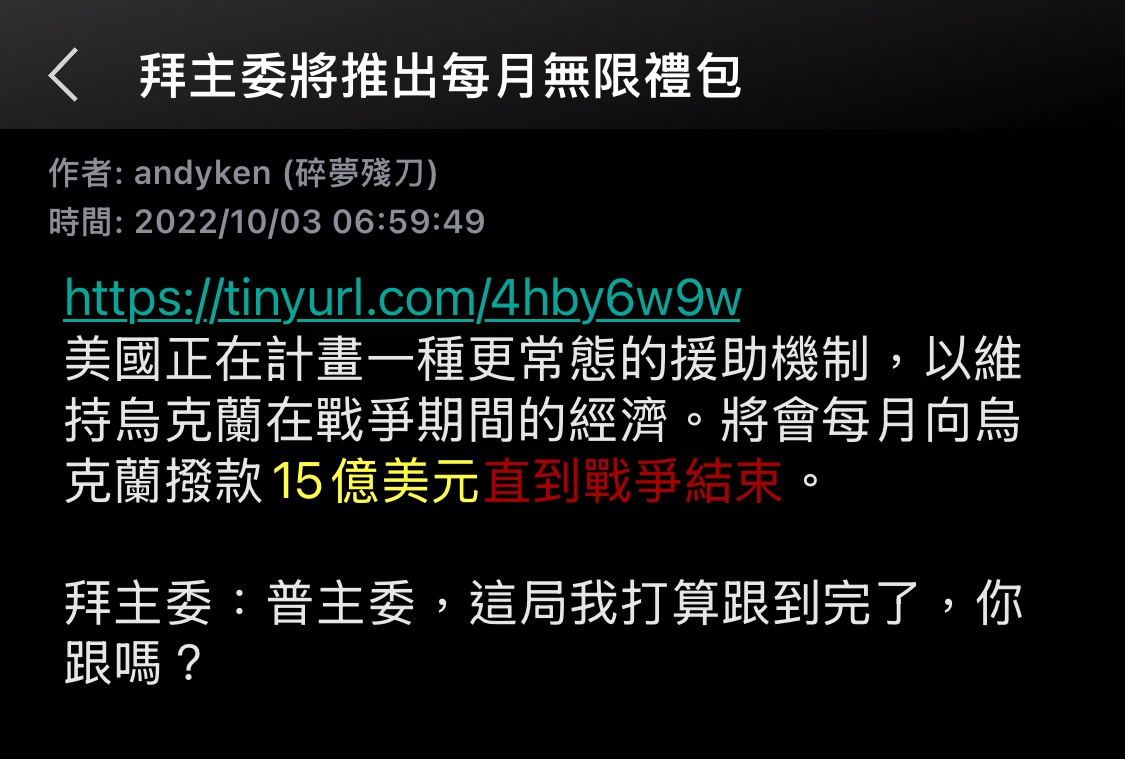 標題[情報] 拜登在卸任前無法全額給予軍援