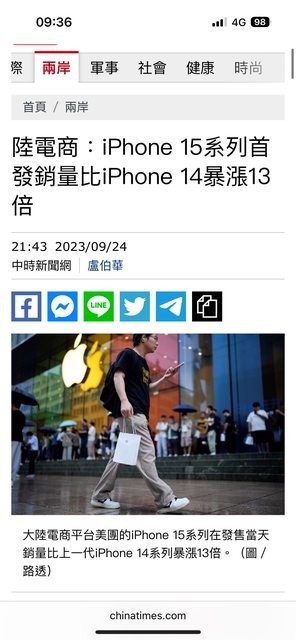 → hsparrot : i15銷量漲13倍 → 經濟遙遙領先,中國又贏了 09/25 11:32