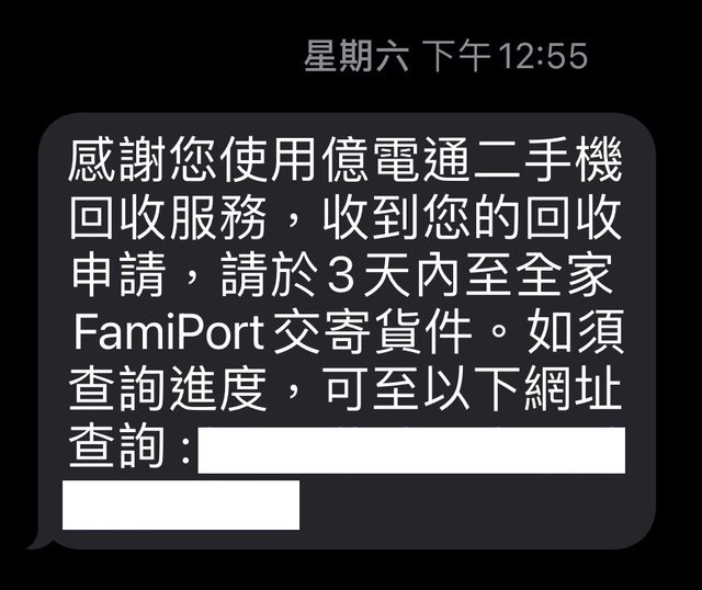 接著就是輸入個人基本資料、匯款資訊等 就會收到一個進度查詢的簡訊 將手機打包好拿到全家給櫃檯就可以進行回收 https://i.imgur.com/9QNd4r6.jpg