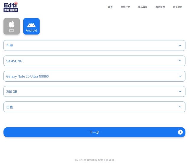 接著就是選擇手機品牌、型號、規格、容量 接著按下一步 https://i.imgur.com/uJfCjRj.jpg