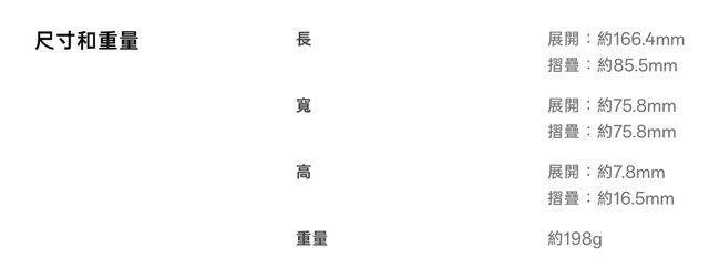 展開後的厚度只有7.8mm算很纖薄,而且只有不到200g