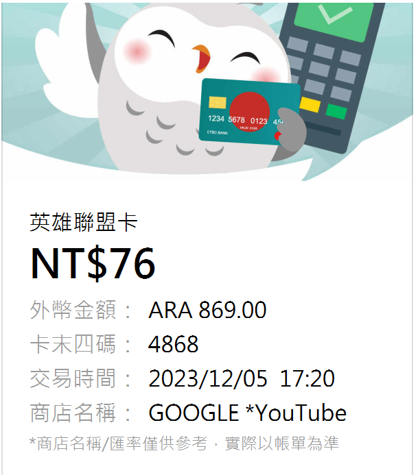 推 poi96300 : 我土昨天扣款有漲價耶 樓上有明細嗎? 12/05 14:05