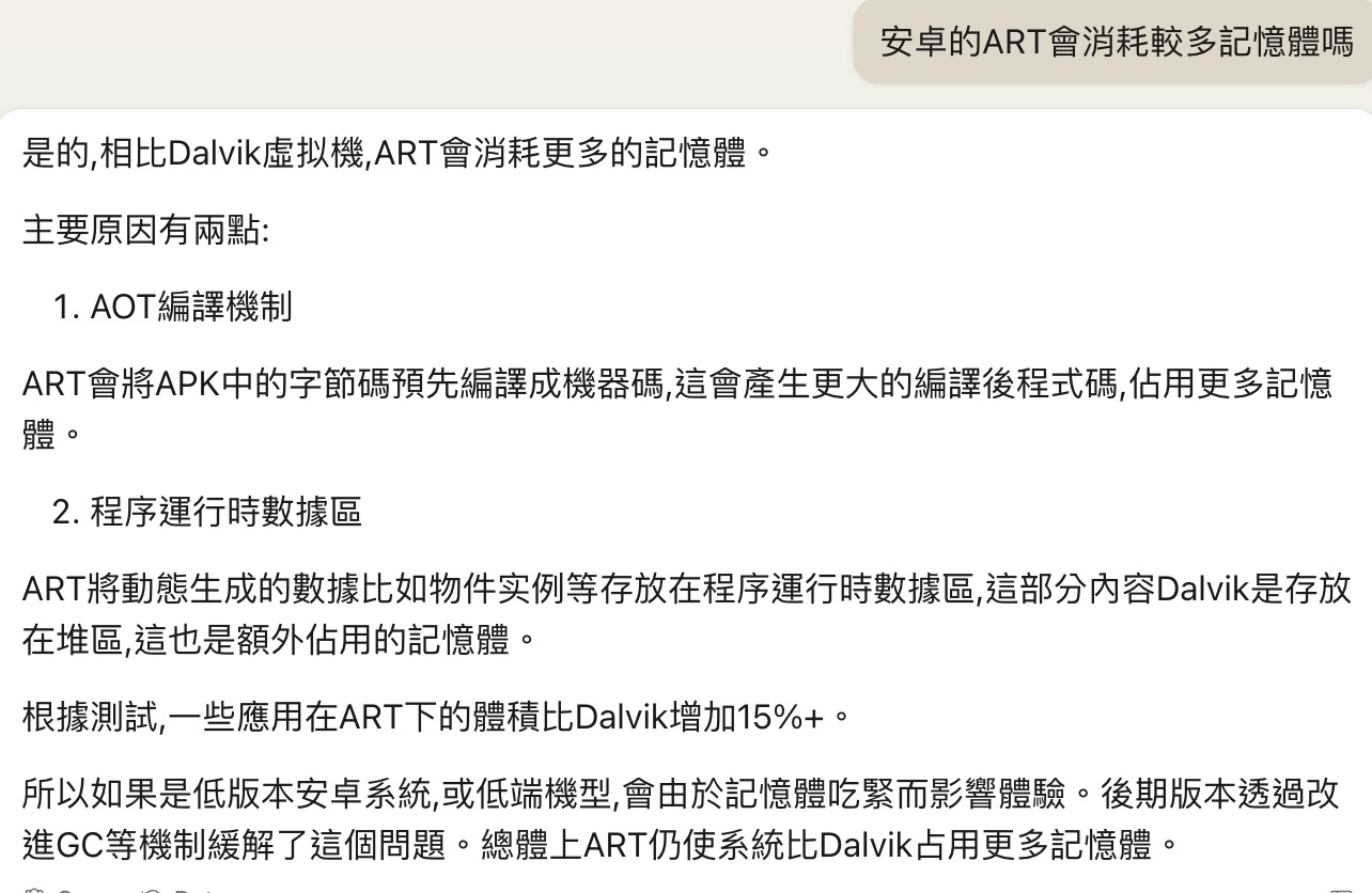 → manbow77 : 你把系統重置後 安卓側剛好會是ART最吃RAM的狀態 12/10 13:57