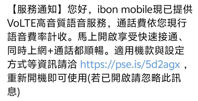 → my9005 : 據功能,4G後都只提供數據功能(無語音功能),VoLTE 01/12 20:20