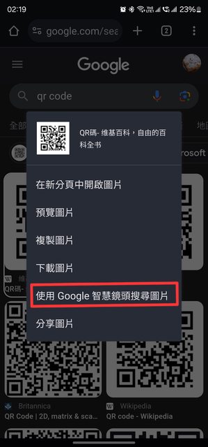 1.螢幕上按住QR CODE圖片 這時會出現選單