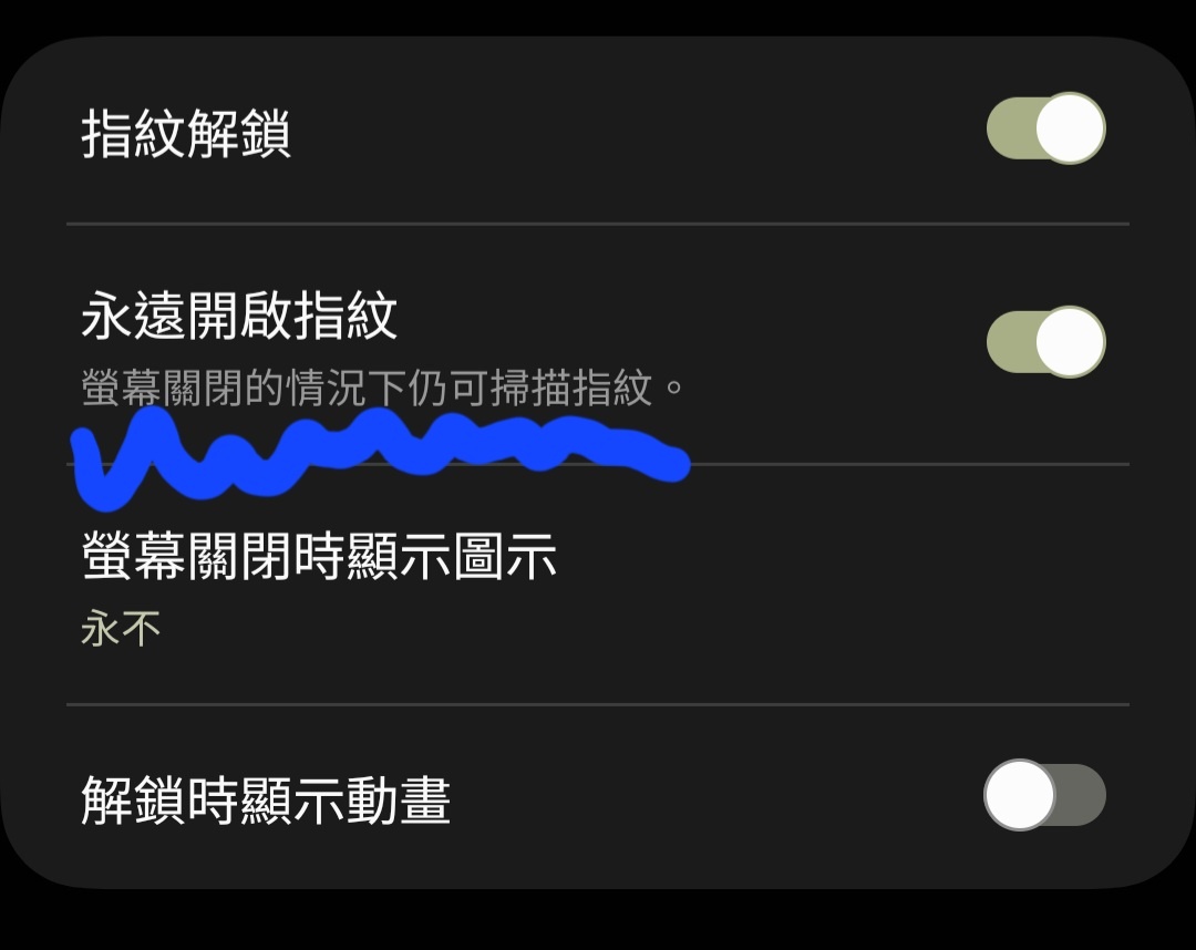 → uegajde : 看起來需要關這個讓他在關螢幕時不去嘗試掃描指紋 02/04 17:58
