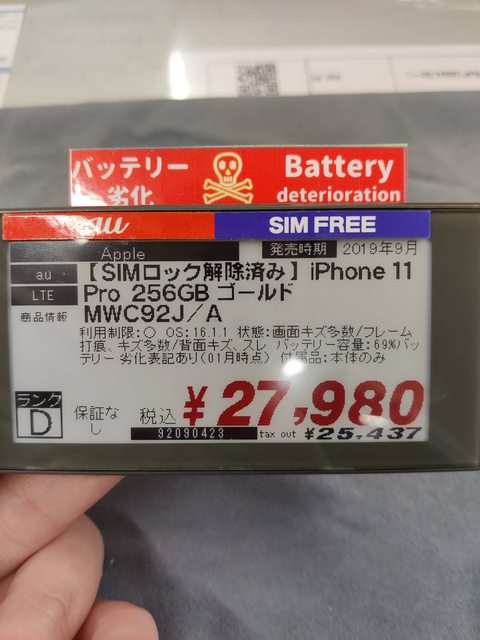 : 小弟最近在大阪閒逛,剛看到一隻二手11 pro 256g,機況D級,目前已知的狀況為:換過原