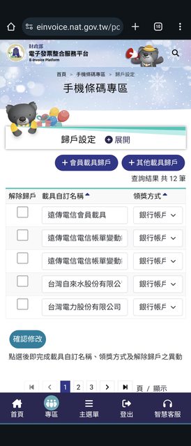 → wolf945 : 一樣的手機條碼,就會顯示在財政部的歸戶設定那邊,02/20 23:18