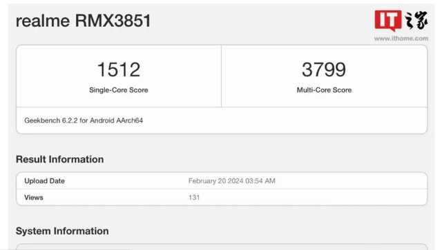 IT之家查詢 Geekbench 網站獲悉,realme 新機 RMX3851 將使用 SM8635 處理器,