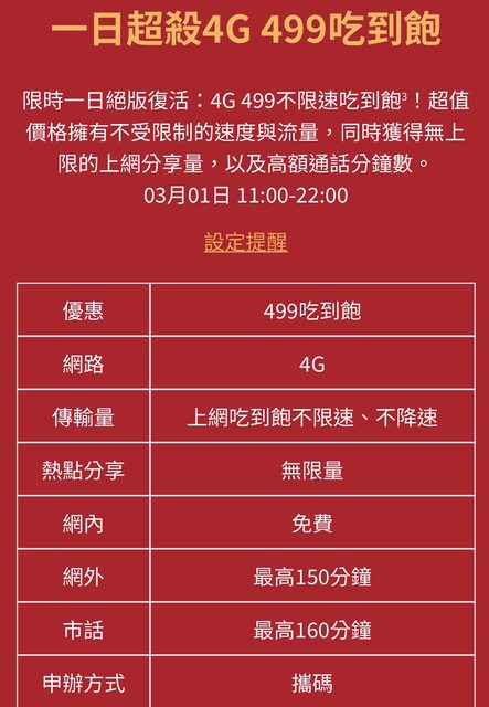 午休跑去詢問今日限定的499方案 https://i.imgur.com/mjePjoC.png