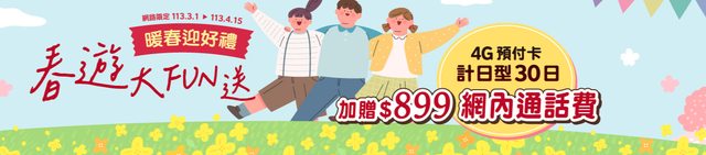 4/15前儲值 計日型30日 899元