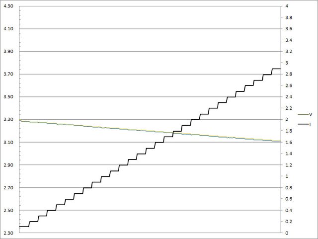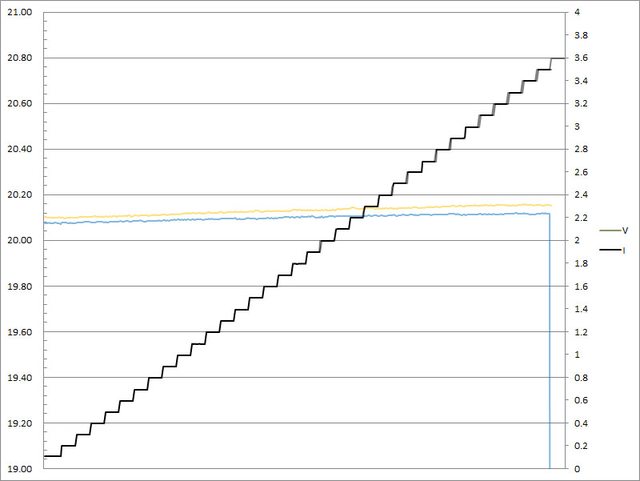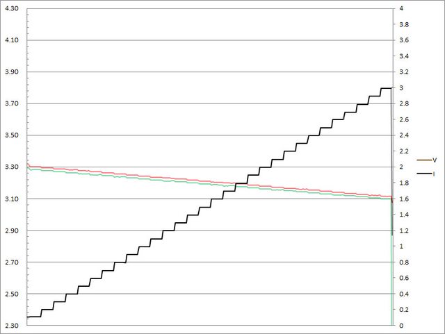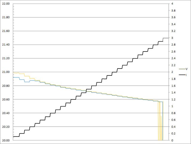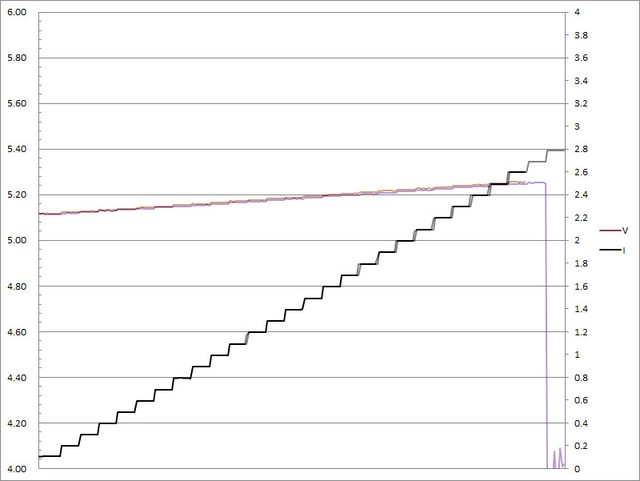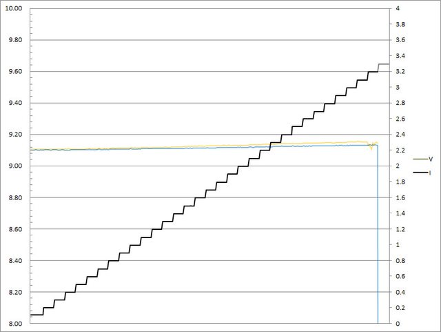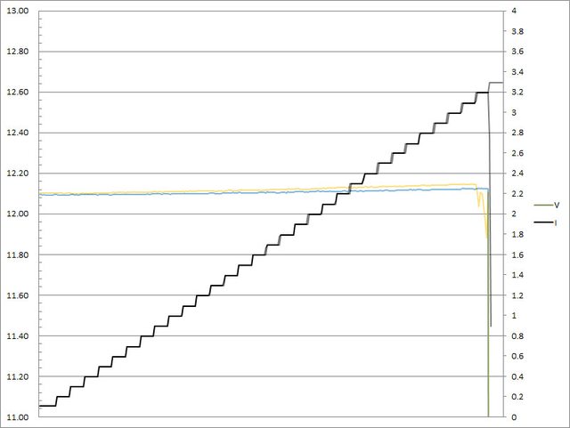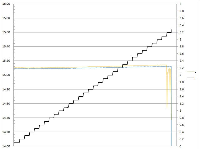 C1輸出電流超過3.3A截止;C2輸出電流超過3.3A大幅壓降,超過3.4A截止