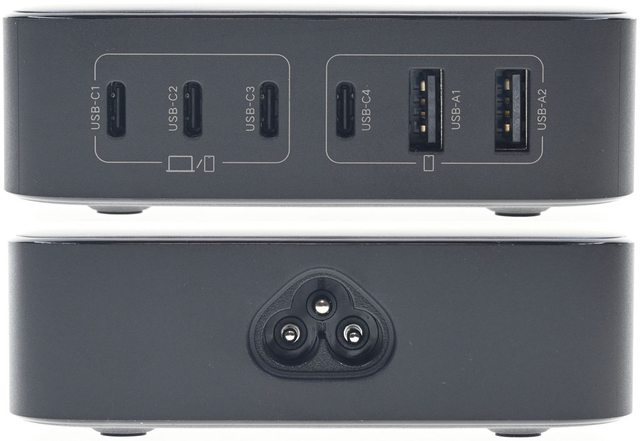 ▼其中一個側面有4個USB-C(C1、C2、C3、C4)及2個USB-A(A1、A2)輸出埠,均有文字及圖