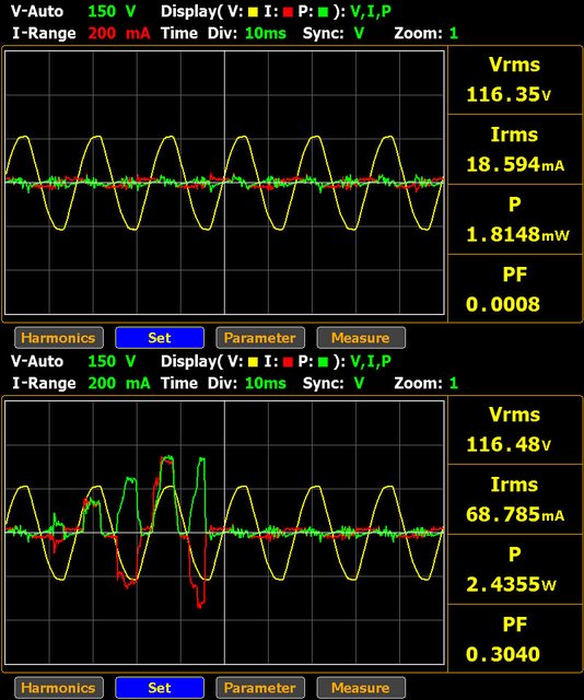 ▼接上電源,未接任何裝置下消耗功率最低1.8mW,最高2.43W