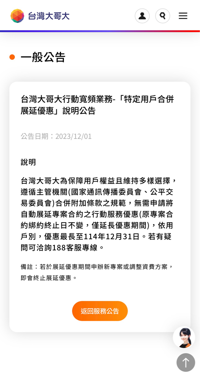 推 popopal : 終身約就是到2033阿 公平會說 概括承受台灣之星既有03/23 11:55