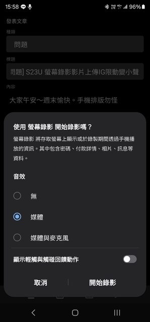 標題[問題] S23U 螢幕錄影影片上傳IG限動變小聲