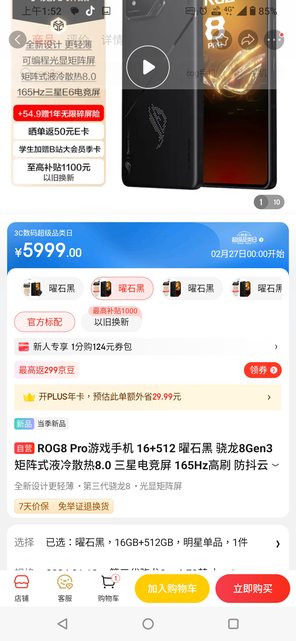 身先士卒先左岸買一台,rog 8 pro,512G的,