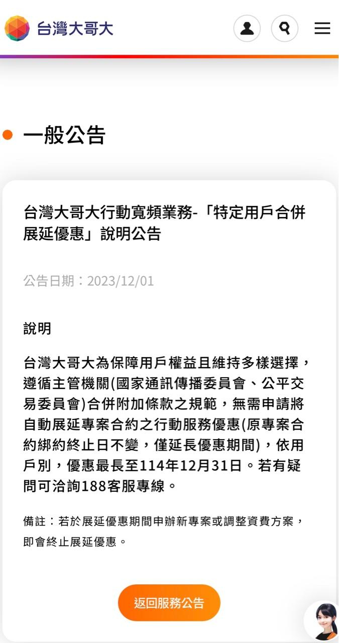 laymor : 展延到2025年底 請勿躁動 這是台哥大客服說的 而且 04/19 20:54