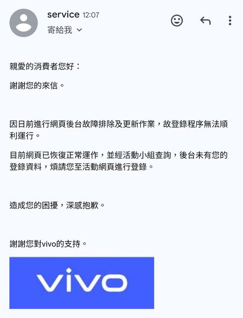 後面VIVO的活動組有回覆我了