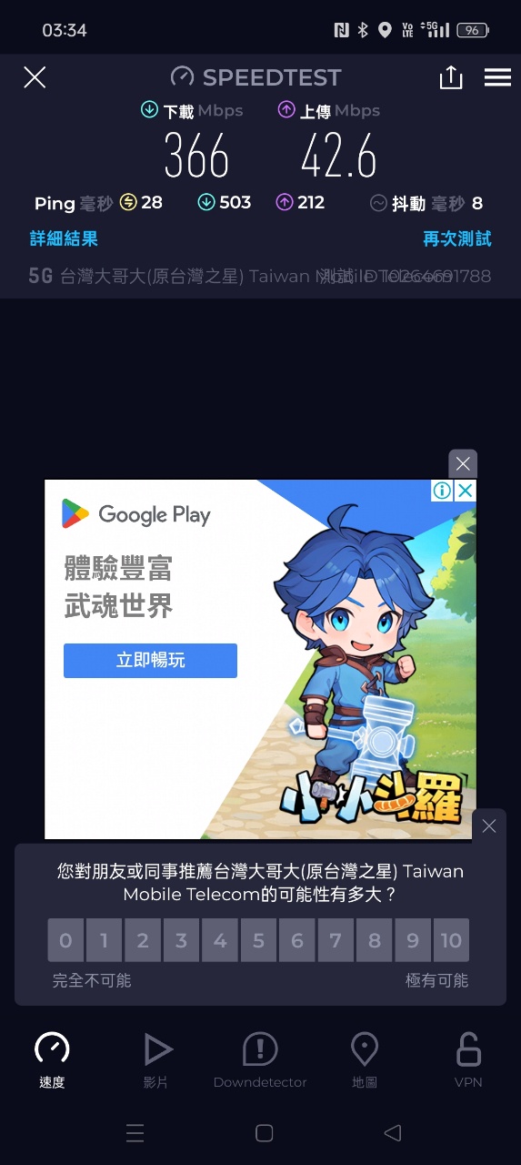 → cbunsg : 湊合著用~ 家裡有固網,這網速外面堪用就好了~ 07/27 12:53
