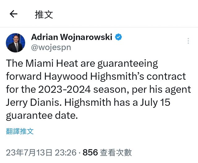 → Ayanami5566 : 熱火缺3-4號替補 高史如果練出來就大賺 07/13 23:54