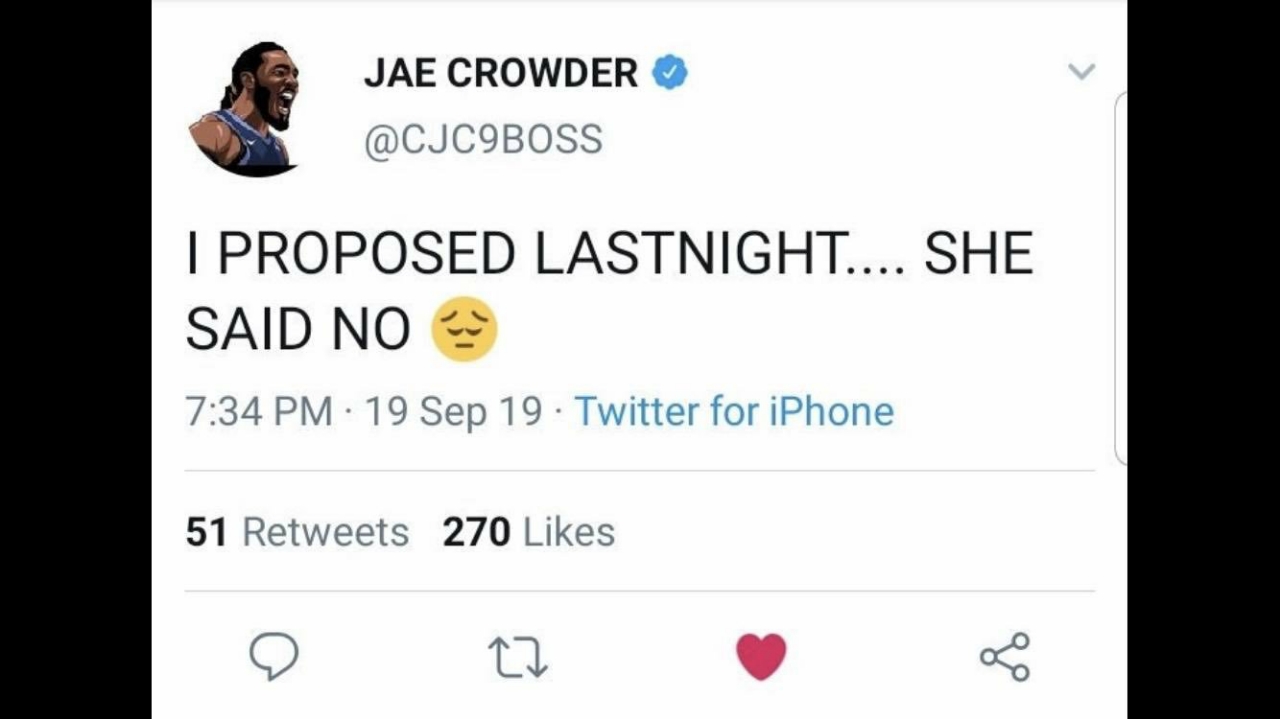 推 DarkHolbach : 無聊,NBA球員不可能求婚失敗 07/23 14:24