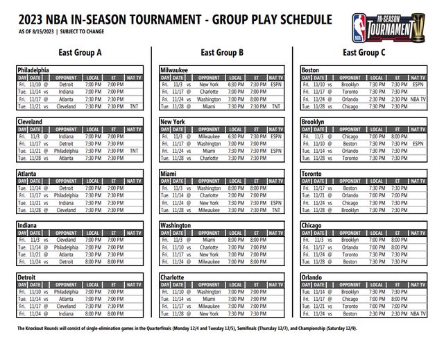 ※ 引述《love1500274 (CoWuCoWu)》之銘言: : https://twitter.com/NBA/status/1677828486587723778 : 季中挑戰賽分組名單出爐 : 西區: : West A West B West C : MEM灰熊 DEN金塊 SAC國王 : PHX太陽 LAC快艇 GSW勇士 : LAL湖人 NOP鵜鶘 MIN灰狼 : UTA爵士 DAL獨行俠 OKC雷霆 : POR拓荒者 HOU火箭 SAS馬刺 : 2023 In-Season Tournament East Group Reveal! : East A East B East C : PHI七六人 MIL公鹿 BOS賽爾提克 : CLE騎士 NYK尼克 BKN籃網 : ATL老鷹 MIA熱火 TOR暴龍 : IND溜馬 WAS巫師 CHI公牛 : DET活塞 CHA黃蜂 ORL魔術 : https://pr.nba.com/nba-in-season-tournament-2023-24-season/ : 小組賽: : 30 支球隊按照東西區 : 隨機分在6組每組5支球隊 : 每支球隊將在 11 月 3 日至 28 日期間 : 每週二和周五舉行的“錦標賽之夜”中進行四場小組賽 : 其中兩場主場比賽,兩場客場比賽 : 淘汰賽: : 六個小組中戰績最好的球隊 以及兩張外卡門票(戰績第二) 將晉級淘汰賽 : 12/7 東西區冠軍戰 地點: 拉斯維加斯 : 12/9 冠軍戰 地點: 拉斯維加斯 : https://imgur.com/ER039WU : 分組抽籤規則: : 第一池:上賽季東西區戰績最好的三支球隊。 : 第二池:上賽季戰績第四至第六的球隊。 : 第三池:上賽季戰績第七到第九的球隊。 : 第四池:上賽季戰績第10至第12的球隊 : 第五池:上賽季戰績第13至第15的球隊 : 淘汰賽 : 分區四強賽將由小組賽戰績最好的兩支球隊主辦(主場) : 小組賽戰績最好的球隊將主場迎戰外卡球隊 (1打4,2打3) : 獎池 : 冠軍:每人 500,000 美元 : 亞軍:每人 200,000 美元 : 四強:每人 100,000 美元 : 八強:每人 50,000 美元 https://i.imgur.com/Y46duxc.png
