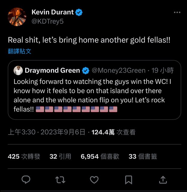 推 toto831206 : 國際球員怎麼守KD我還真的不知道 NBA都沒有守得住09/06 09:29