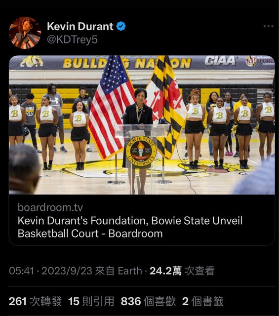 "我們非常感謝KD和Durant家族基金會的捐贈,他們的捐贈為我們帶來了新的地板設計和