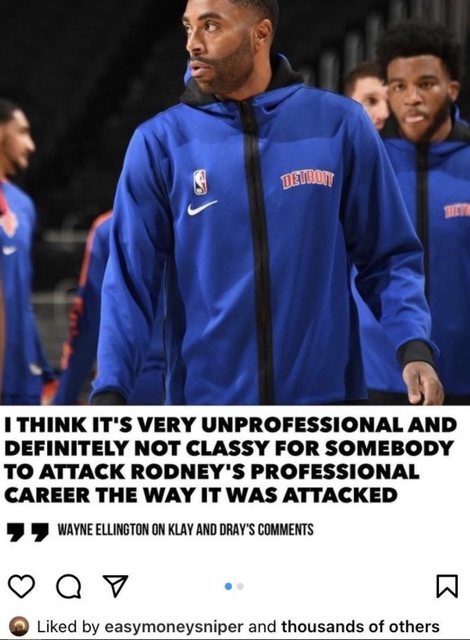 當時的活塞隊友Ellington發推力挺,批K湯和嘴綠「不職業也不正派」。