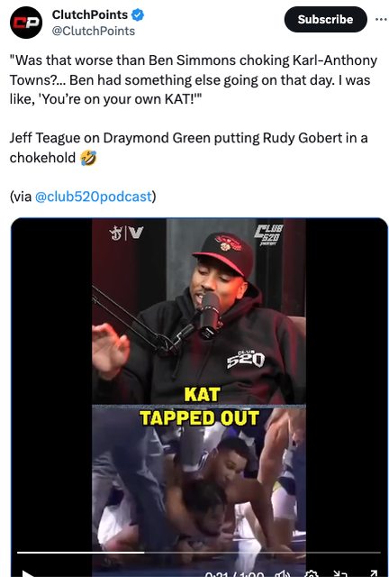 Jeff Teague on Draymond Green putting Rudy Gobert in a chokehold