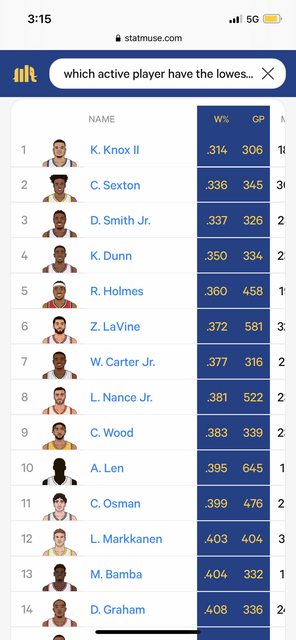 → jeff1013 : 這個就是只算該位球員有出賽的場次勝敗10/25 15:29