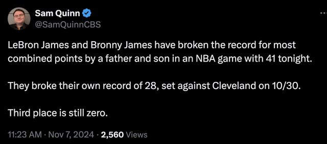 推 cd928 : lbj等著破父子季後賽紀錄呢 11/07 23:14