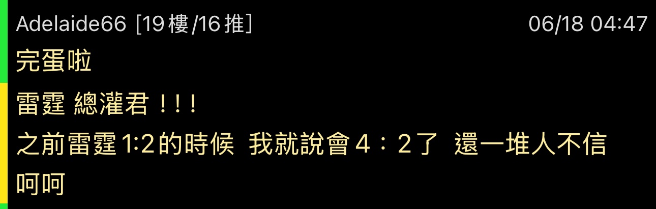 推 chasegirl : 對對對 G4當然是正常吹判 對吧雷迷? 06/20 11:29