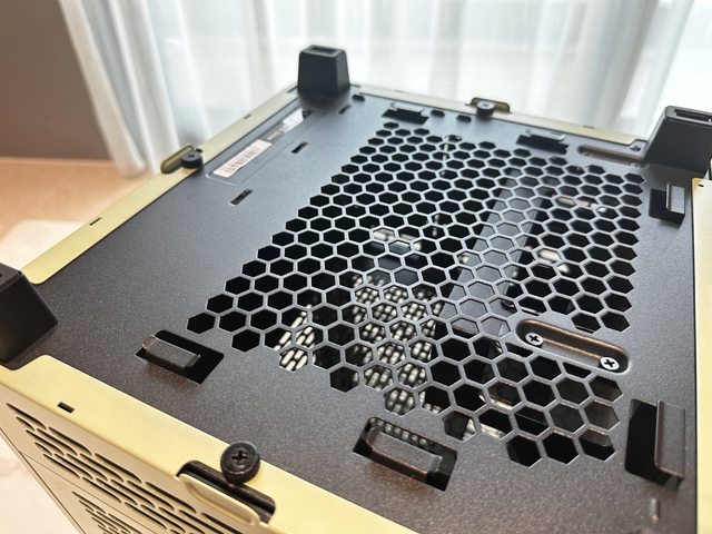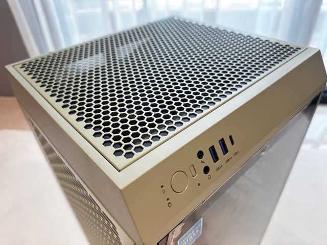 頂部為蜂巢狀開孔,IO位於前上方,為常見的5Gbps TYPE-A*2加10Gbps TYPE-C*1配置。